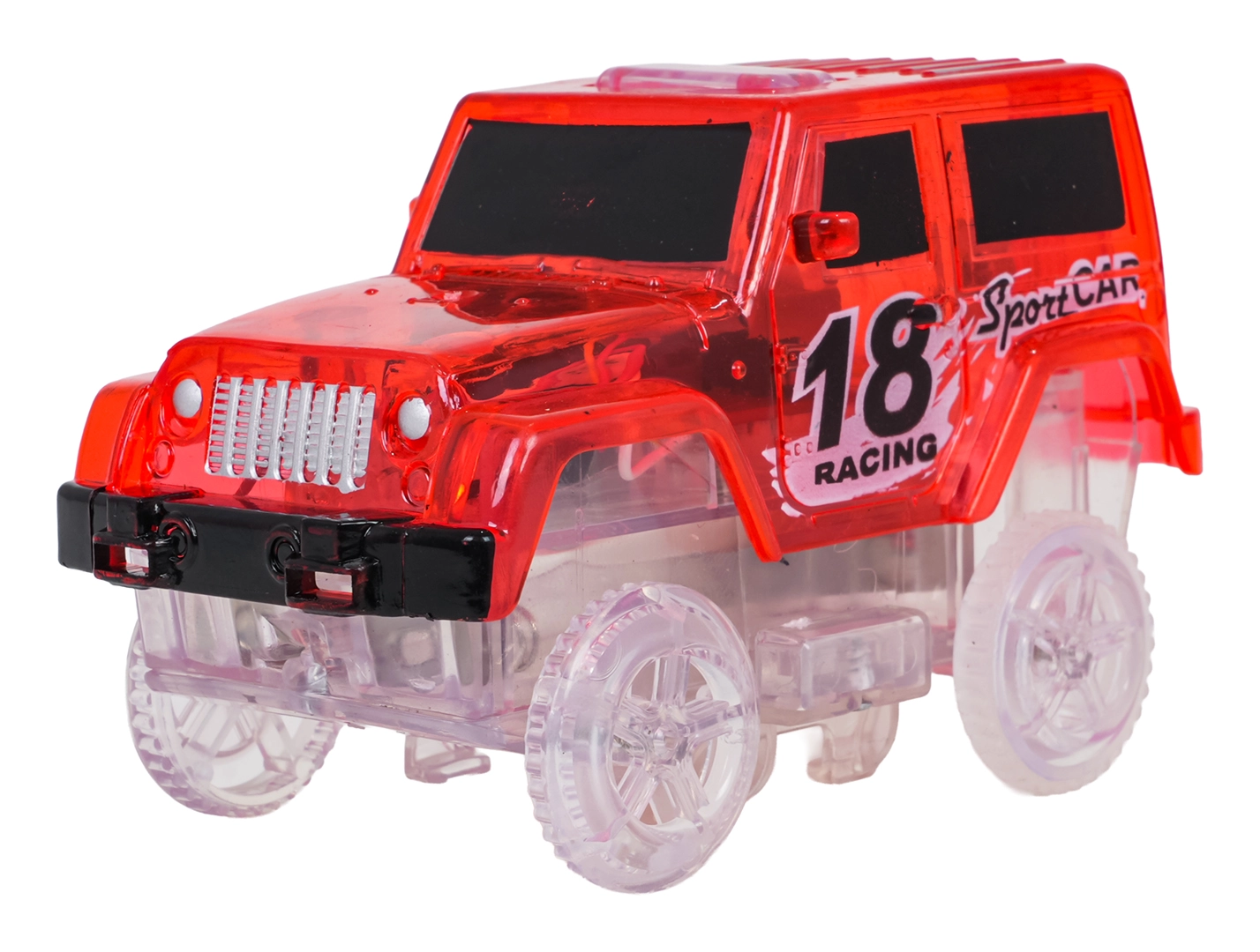 • Svieti v tme – fluorescenčné diely a LED autíčko pre magickú nočnú jazdu.