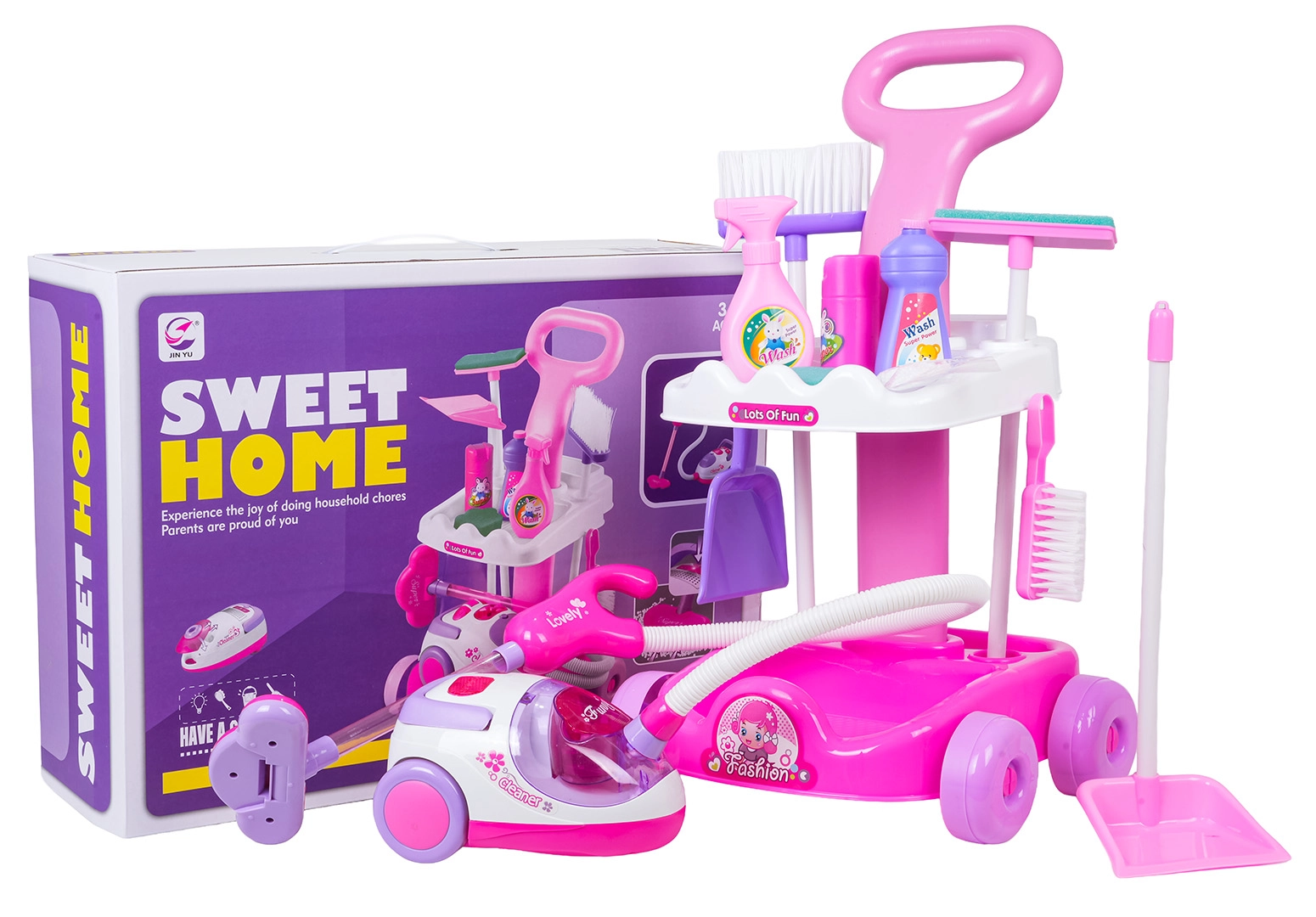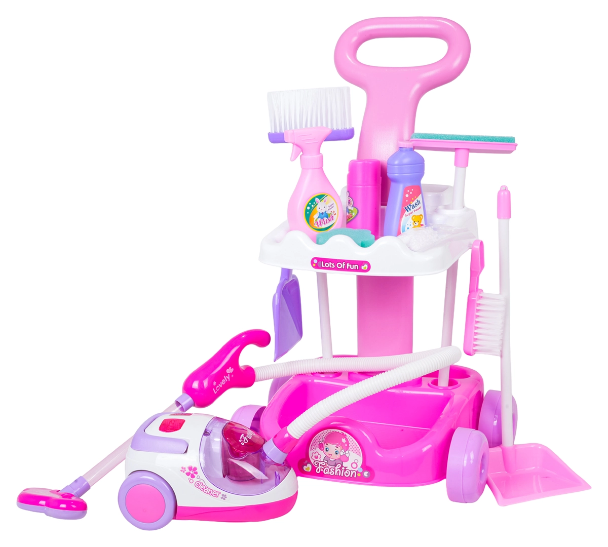 Podporte detskú fantáziu a každodenné rituály s ružovým upratovacím vozíkom, ktorý prináša všetko, čo malí pomocníci potrebujú. Stabilný vozík s kolieskami pojme všetko upratovacie príslušenstvo, zatiaľ čo interaktívny vysávač so svetlom a zvukmi dodá hre na autentickosti. Kvalitné, bezpečné plastové spracovanie v živých farbách je ideálne pre deti od 3 rokov.