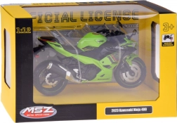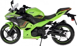 Tento precízne spracovaný model NINJA 400 v ikonickej zelenej farbe verne napodobňuje skutočný športový motocykel – od kapotáže a brzdových kotúčov až po zrkadlá a prístrojový štít. Je ideálny ako zberateľský exponát na poličku aj ako štýlová hračka pre malých milovníkov motoriek.