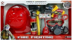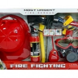 V balení nájdete prilbu, masku, koncovku hadice, sekáčik, páčidlo, ručný hasiaci prístroj, krátkovlnnú vysielačku a hodinky. Sada je dodávaná v darčekovom krabičkovom balení s okienkom, takže je skvelým tipom na darček pre malých nadšencov do hasičov.