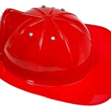 Červená detská prilba s odvetrávacími nitmi a emblémom poskytuje pohodlné nosenie a skvele doplní hasičský kostým.