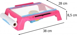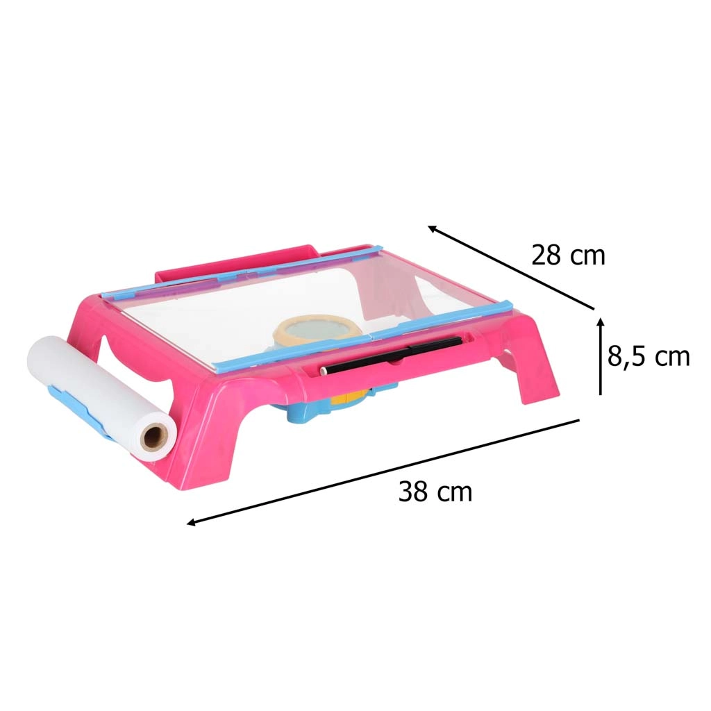 Tento kompaktný kresliaci stolík s projektorom premieta obrázky priamo na papier, takže deti môžu ľahko obkresľovať a učiť sa kresliť krok za krokom. Prehľadná pracovná plocha, podávač s papierovou rolkou a 4 klipsy udržia papier pevne na mieste. Nastaviteľná šošovka projektora zabezpečí ostrý obraz pre jasné línie.