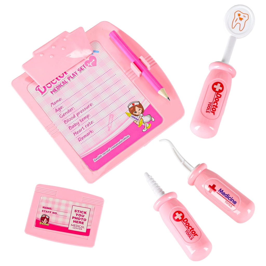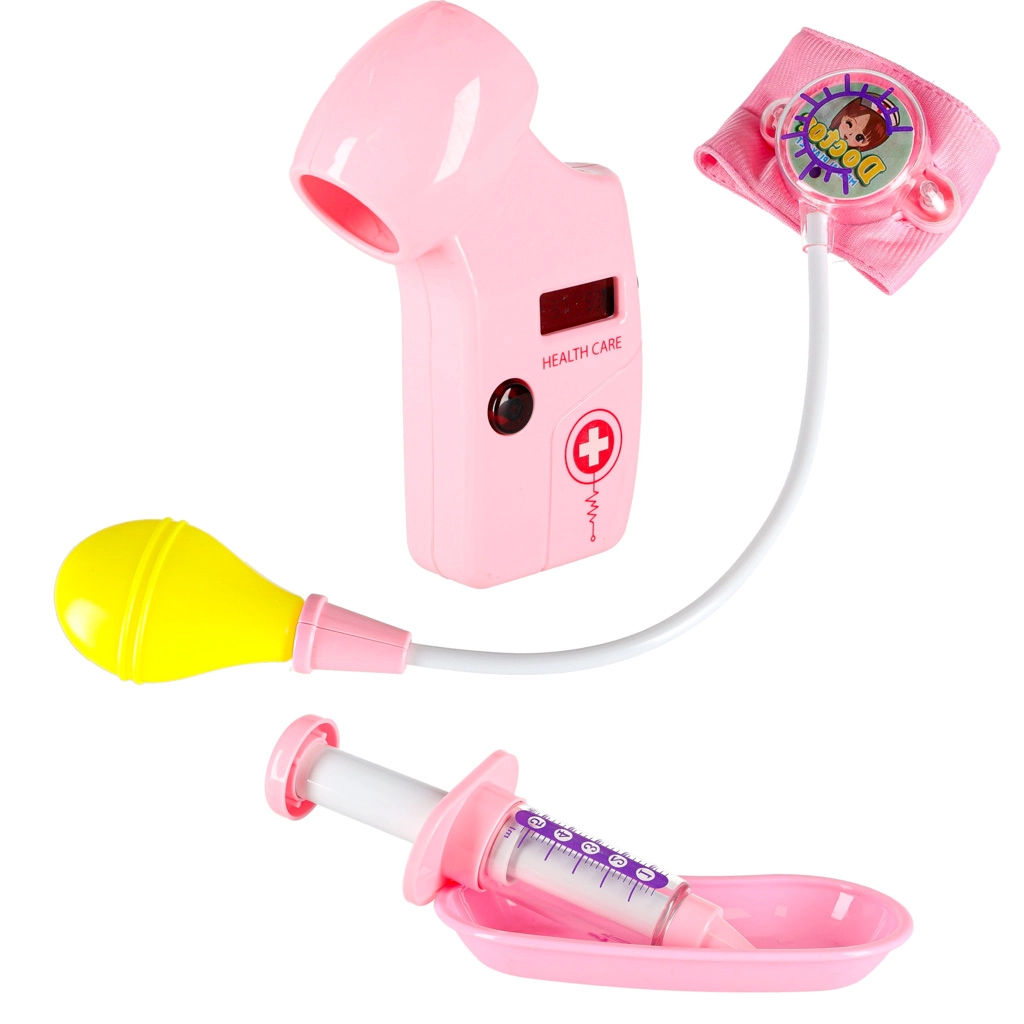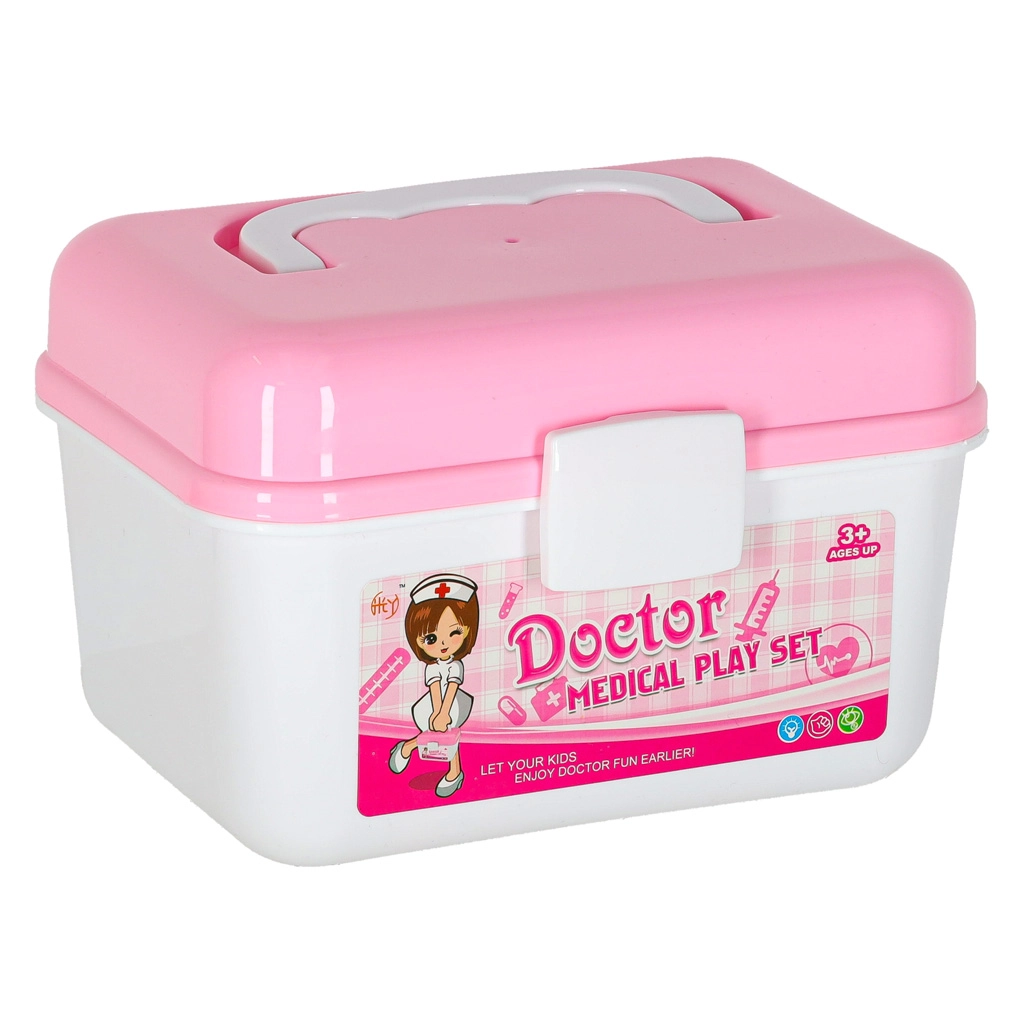 Roztomilý lekársky kufrík v bielo‑ružovej farbe s kostýmom a bohatou sadou 35 dielov premení každé dieťa na malého lekára alebo sestričku. Obsahuje interaktívne nástroje so svetlom a zvukom (stetoskop s tlkotom srdca, teplomer, otoskop, pulzný oxymeter, svietidlo), zubné nástroje aj IV stojan pre realistickú hru. Skvelá hračka, ktorá rozvíja fantáziu, uvoľňuje strach z lekára a učí zdravotnej prevencii a hygiene.