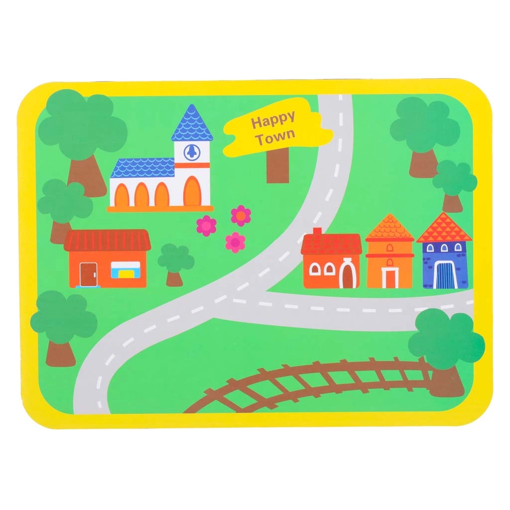 Herná podložka s cestami a budovami inšpiruje k fantazijnej hre a rozvíja priestorovú predstavivosť. Deti môžu radiť tvary, triediť farby a vytvárať vlastné dopravné scenáre, čím prirodzene získavajú logické myslenie a základy dopravnej výchovy.