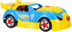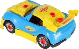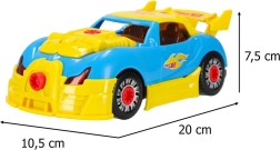 Model je 2v1 – deti si môžu vybrať medzi kabrioletom a pretekárskym špeciálom. Plastové diely sú ľahké, odolné a prispôsobené na jednoduché skrutkovanie veľkými plastovými skrutkami. Sada podporuje rozvoj tvorivosti, technického myslenia aj koordinácie oko–ruka.