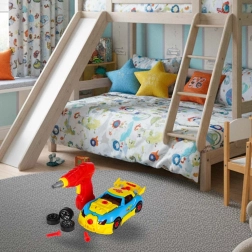 Detský aku skrutkovač a veľké plastové skrutky umožnia opakovanú montáž aj demontáž. Ideálne na rozvoj jemnej motoriky a trpezlivosti.