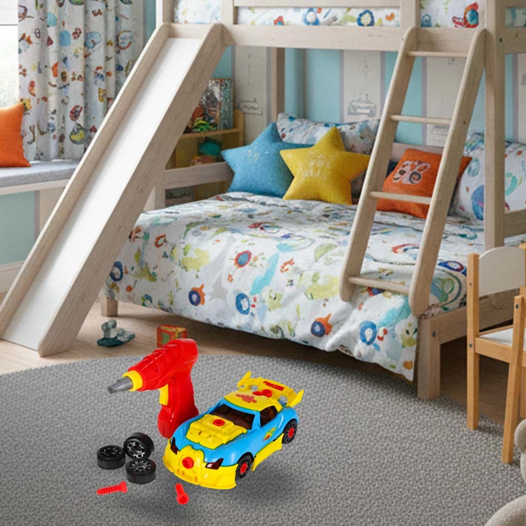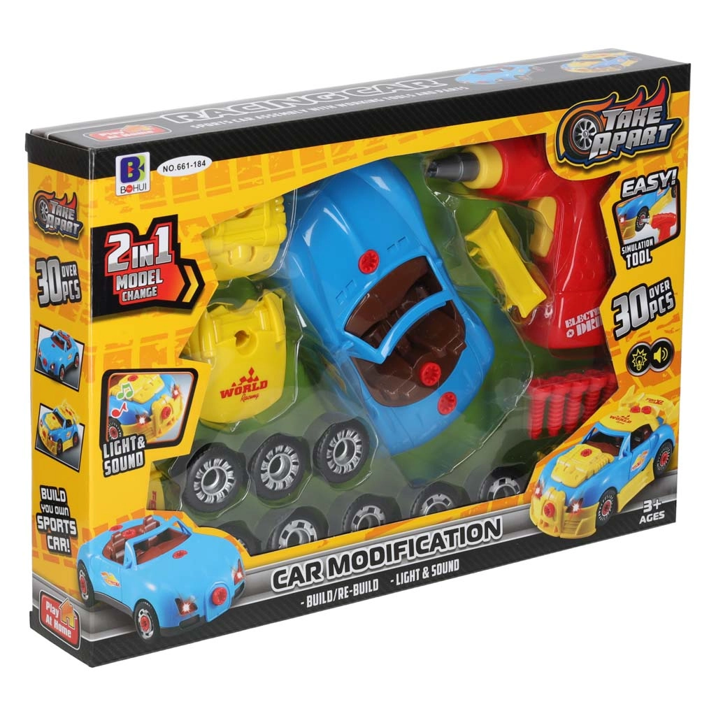 Stavebnica farebného športového auta prináša deťom zábavu na dlhé hodiny. Vďaka priloženému batériovému skrutkovaču môžu malé ruky auto rozoberať a zasa skladať, meniť panely karosérie aj kolesá a objavovať, ako veci fungujú. Auto po zostavení zaujme svietiacimi svetlami a zvukmi motora, ktoré umocnia realistický zážitok z hry.