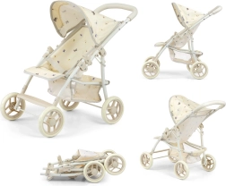 Štýlový kočík pre bábiky MILLY MALLY Natalie Nature ponúka realistický vzhľad a funkcie ako skutočný detský kočík. Má ľahkú kovovú konštrukciu, skladaciu striešku, bezpečnostné pásy a spodnú sieťku na doplnky. Vďaka penovej rukoväti a tichým kolieskam je ideálny na pohodlné hranie doma aj vonku.
