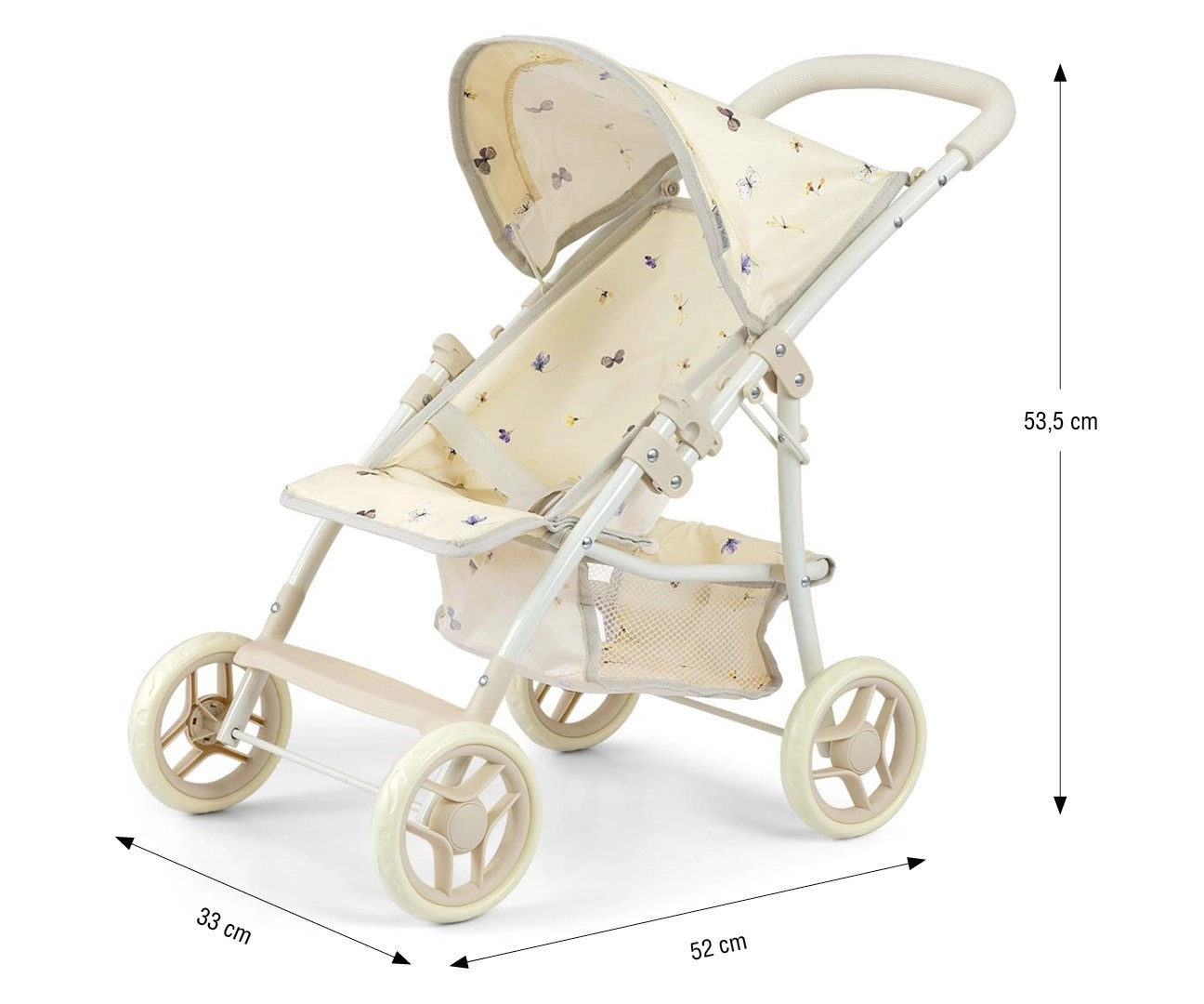 Skladacia budka chráni bábiku a priestranná sieťka pod sedadlom pojme fľaštičku, oblečenie aj ďalšie príslušenstvo.