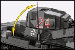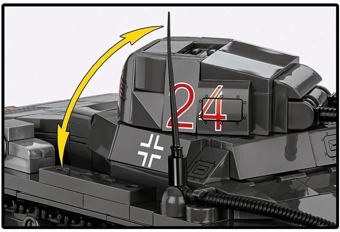 Otočná veža o 360°, nastaviteľná výzbroj a realistické pásy s kolesami umožnia dynamické scény, plynulý pohyb a atraktívnu prezentáciu modelu.