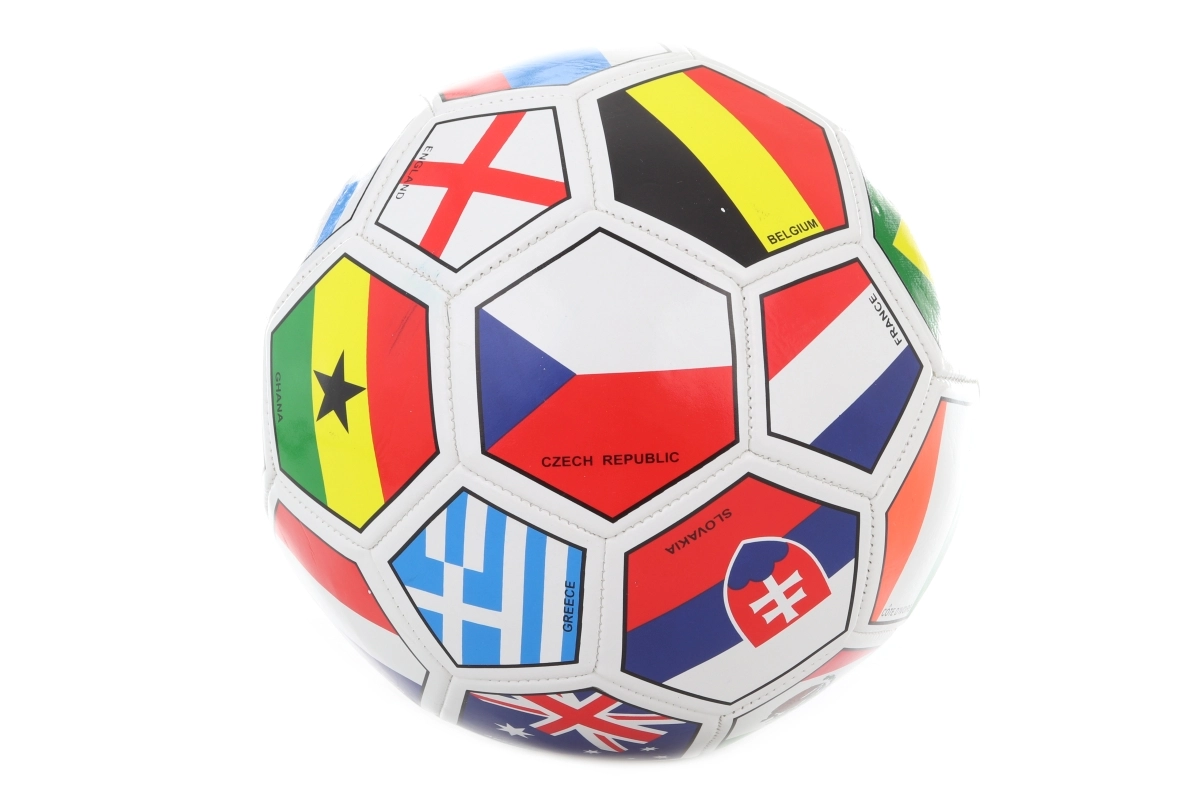 Štýlová futbalová lopta s motívmi národných vlajok na zábavné tréningy aj voľnočasovú hru. Je určená na používanie na nespevných plochách (tráva, hlina), dodáva sa vyfúknutá a po nafúknutí má priemer približne 20 cm (podľa nahustenia). Ideálna pre hráčov od 3 rokov, veľkosť 5.