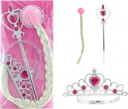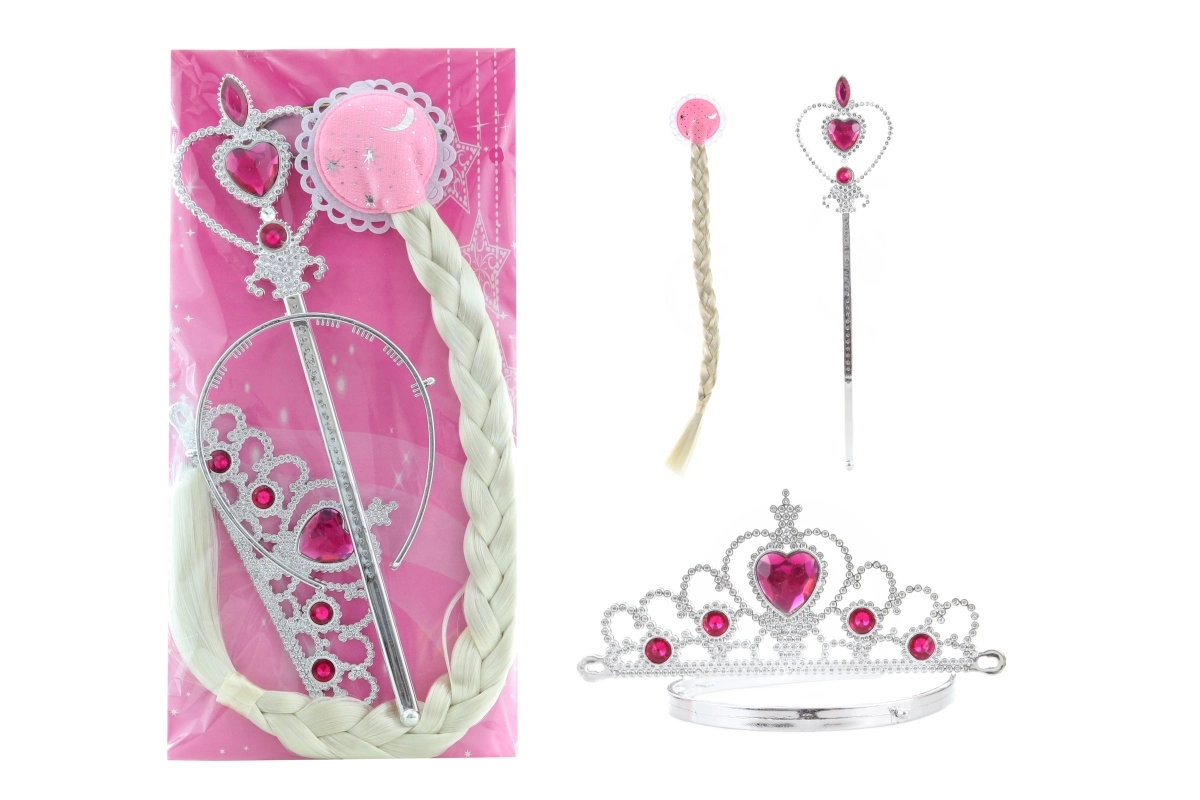 Premente každé detské kráľovstvo na čarovnú ríšu. Táto sada krásy s blond vrkočom je perfektná na fantazijné hry, karnevaly aj každodenné hranie. Deti si zamilujú trblietavú korunku, elegantné žezlo a výrazný dlhý vrkoč, ktorý doplní každý princeznovský outfit.