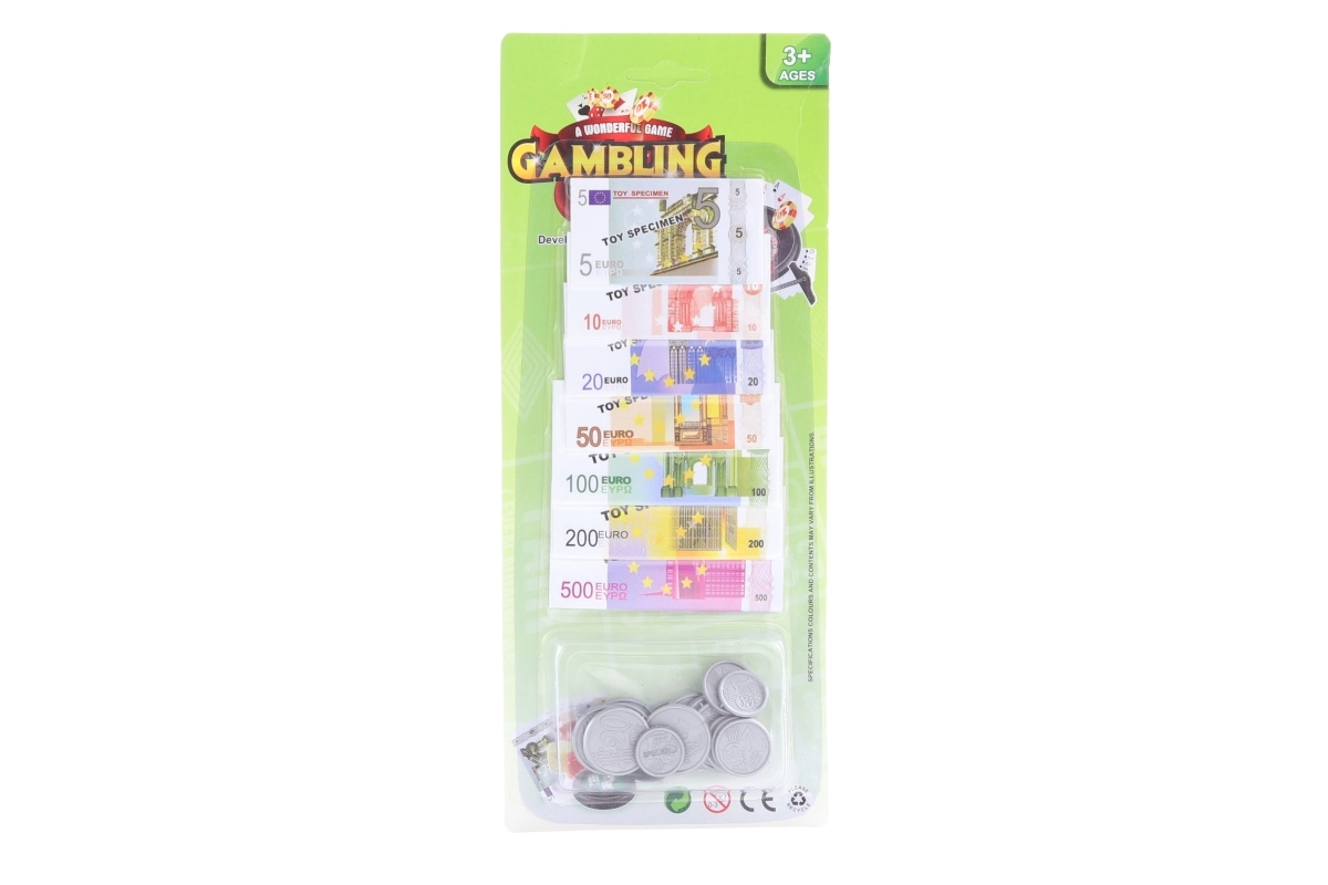 Zábavná sada hracích peňazí v eurách pre deti od 3 rokov obsahuje realistické bankovky a mince na učenie počítania, rozlišovanie hodnôt a hru na obchod. Ideálna pomôcka pre finančnú gramotnosť, školské hry aj rodinnú zábavu.