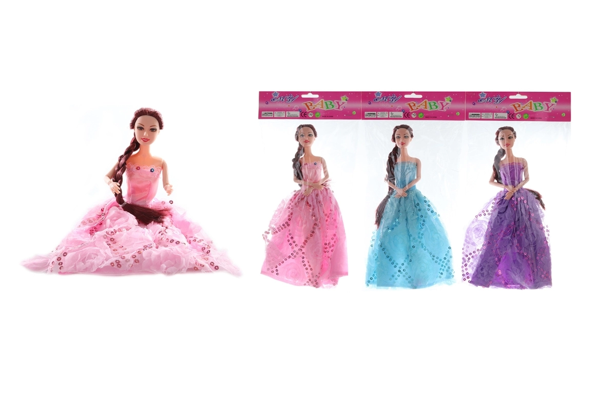 Elegantná kĺbová bábika s veľkosťou 30 cm v krásnych šatách poteší každú malú princeznú. Má ohybné ruky a nohy, dlhé vlasy zapletené do vrkoča a je ideálna na kreatívne hranie. Dodávame v praktickom sáčku, farby podľa dostupnosti. Vhodné od 3 rokov.