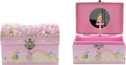Elegantná hudobná šperkovnica v tvare truhlice na štýlové uloženie šperkov. Po natiahnutí kľúčika sa vo vnútri roztočí baletka a zaznie melódia. Vo vnútri nájdete praktické zrkadielko a priestor na drobnosti. Romantický dizajn, tancujúca baletka a hudobný mechanizmus potešia každú milovníčku krásnych doplnkov.