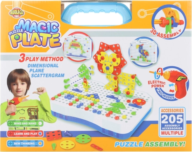 Zábavná a kreatívna skrutkovacia stavebnica s funkčnou detskou vŕtačkou v praktickom kufríku poteší malých konštruktérov od 3 rokov. Balenie obsahuje 205 dielov, nástroje a návod, takže deti môžu rozvíjať jemnú motoriku, logické myslenie a kreativitu pri stavaní nekonečného množstva modelov.