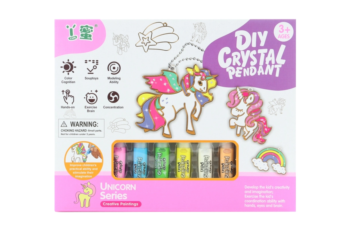 Objavte zábavnú kreatívnu sadu pre deti, s ktorou si ľahko vytvoria vlastné prívesky s motívom jednorožcov. Balenie ponúka všetko potrebné – 6 príveskov na dozdobenie, 6 farieb, trblietky, pinzetu a šnúrky. Ideálne na rozvoj kreativity a jemnej motoriky, vhodné pre deti od 3 rokov.