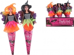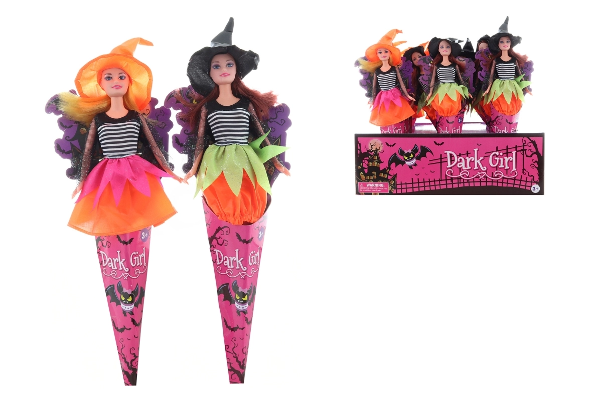 Očarujúca bábika čarodejnica v dekoratívnom kornúte poteší každého malého kúzelníka. Vďaka kĺbovej konštrukcii má pohyblivé ruky, nohy aj hlavu, takže ľahko zvládne najrôznejšie pózy a halloweenske dobrodružstvá. Vyrobená z odolného plastu s papierovým kornútom, veľkosť bábiky s krídlami cca 35 × 10 cm. Vhodné pre deti od 3 rokov.