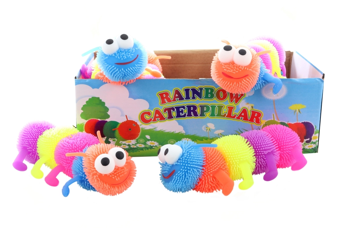 Zábavná gumová húsenica so svetelným efektom pre deti od 3 rokov. Pri dotyku či údere bliká svetielko v prednej časti. Mäkký, strapkatý povrch podporuje zmyslové vnímanie a jemnú motoriku. Veľkosť cca 16,5 cm, ideálna do malej detskej rúčky.