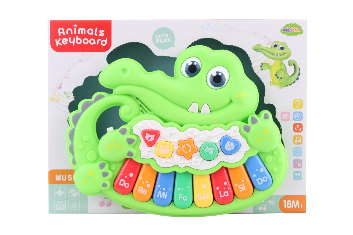 Zábavné plastové pianínko v tvare krokodíla poteší najmenších prvými melódiami aj zvukmi zvieratiek. Po zapnutí vydáva tóny kláves alebo hlasy zvieratiek, takže je ideálne na rozvoj sluchu a motoriky. Napájanie zabezpečujú 3× AA batérie (nie sú súčasťou balenia).