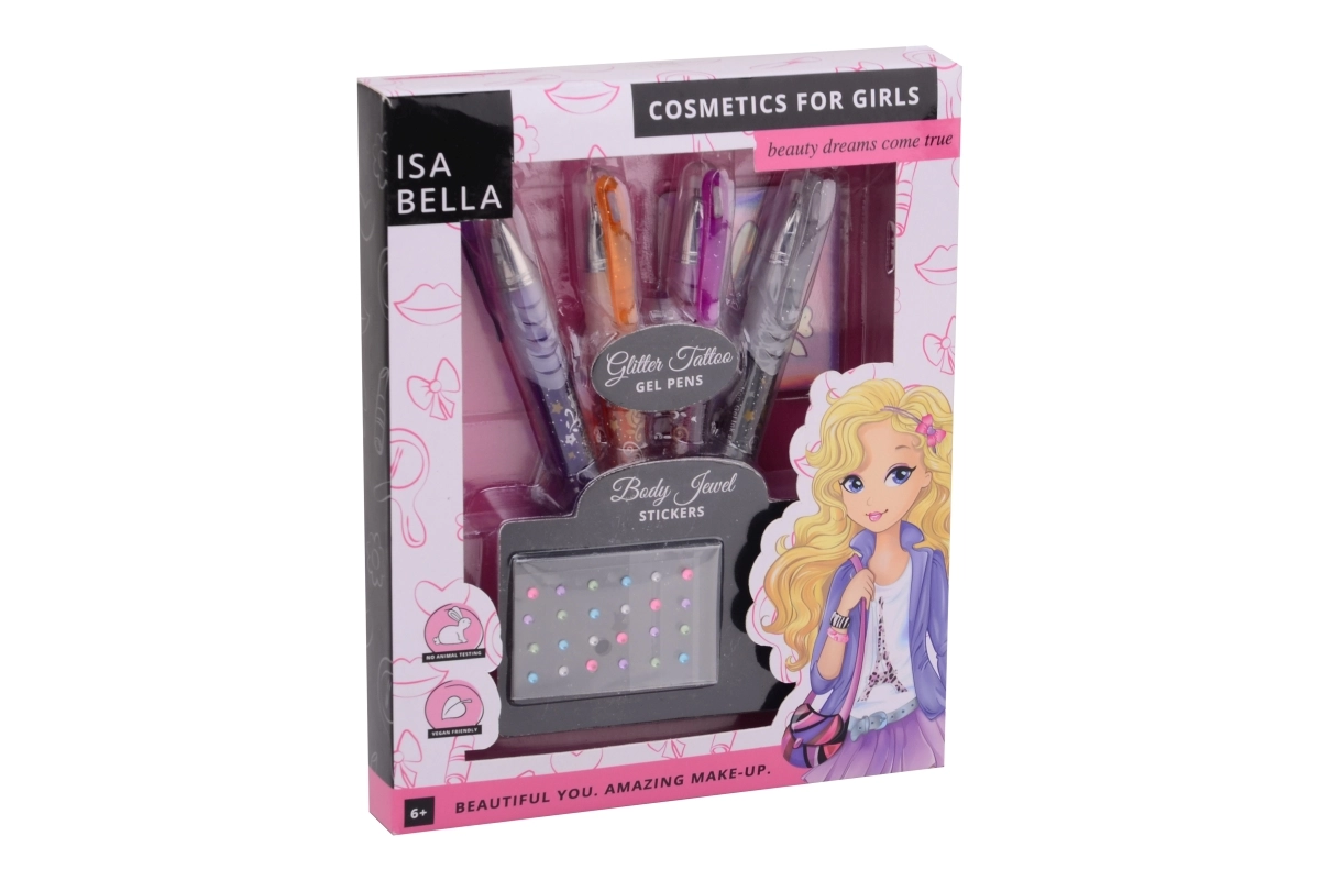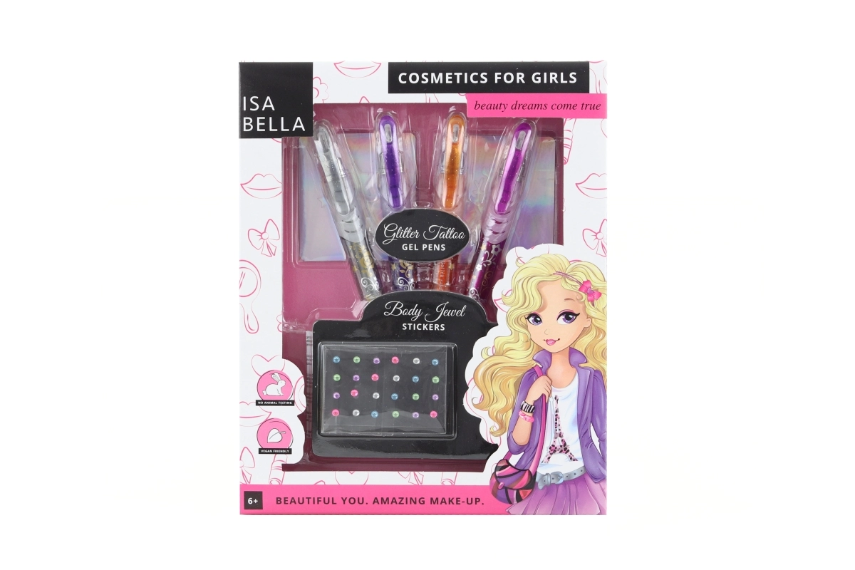 Objavte čaro trblietok s touto zábavnou tetovacou sadou pre dievčatá. Vďaka štyrom trblietavým perám a užitočným doplnkom vytvorí vaše dieťa originálne dočasné tetovania na každú príležitosť – od domácej zábavy až po detské oslavy.