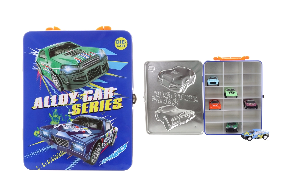 Praktická plechová krabička s 6 kovovými autíčkami na spätný chod poteší malých pretekárov aj zberateľov. Odolná krabička pojme až 18 autíčok, je ideálna na ukladanie, prenášanie a darčekové balenie. Kompaktné rozmery boxu a autíčok sú skvelé pre detské ruky a hranie doma aj na cestách.