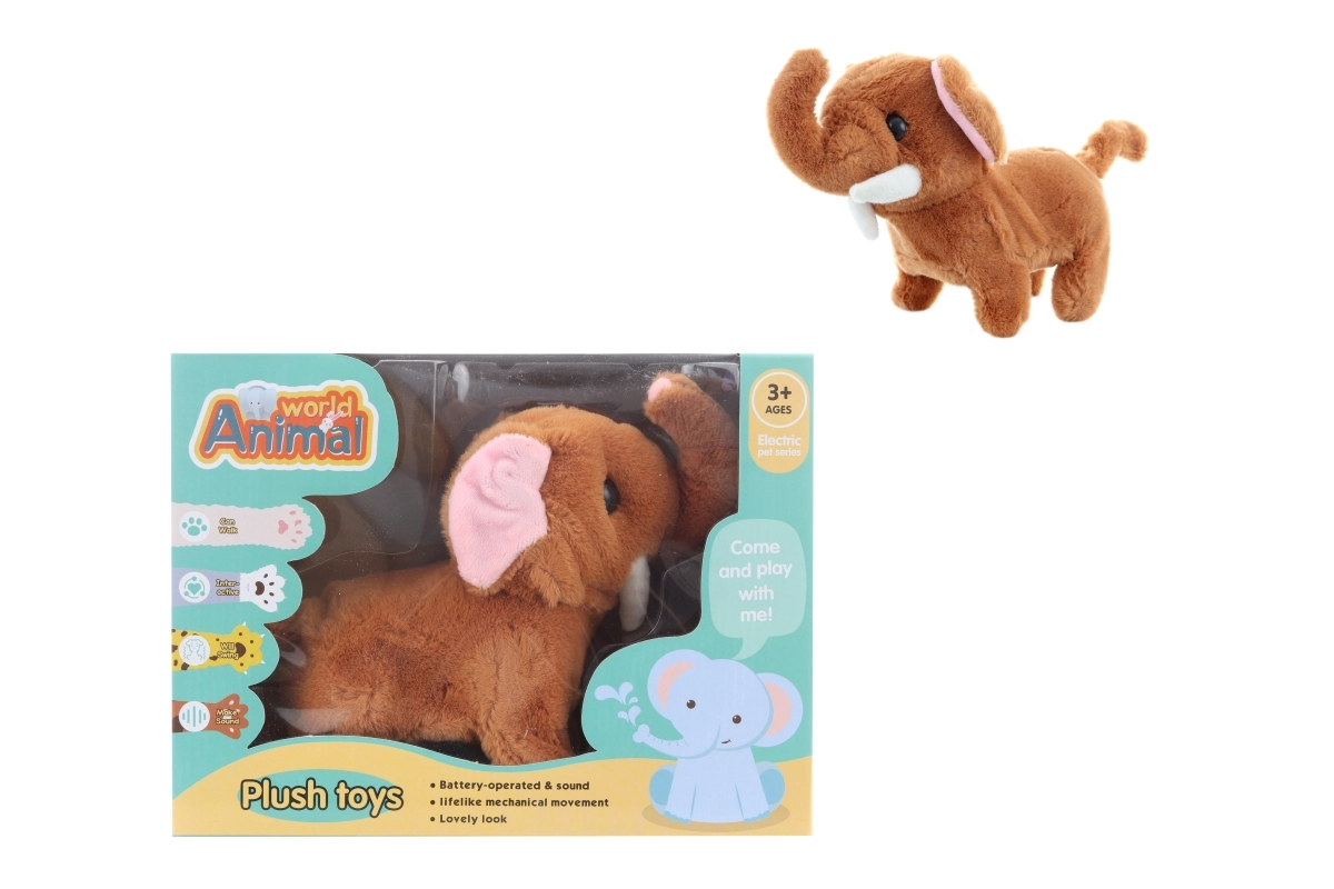 Roztomilý chodiaci slon pre deti od 3 rokov prináša veľa zábavy. Po vložení 2 AA batérií sa začne pohybovať a vydáva autentické zvuky trúbenia. Kombinácia plastu a plyšu je odolná aj príjemná na dotyk. Chôdza, zvuky slona a jednoduché ovládanie na batérie poteší každého malého milovníka zvierat.