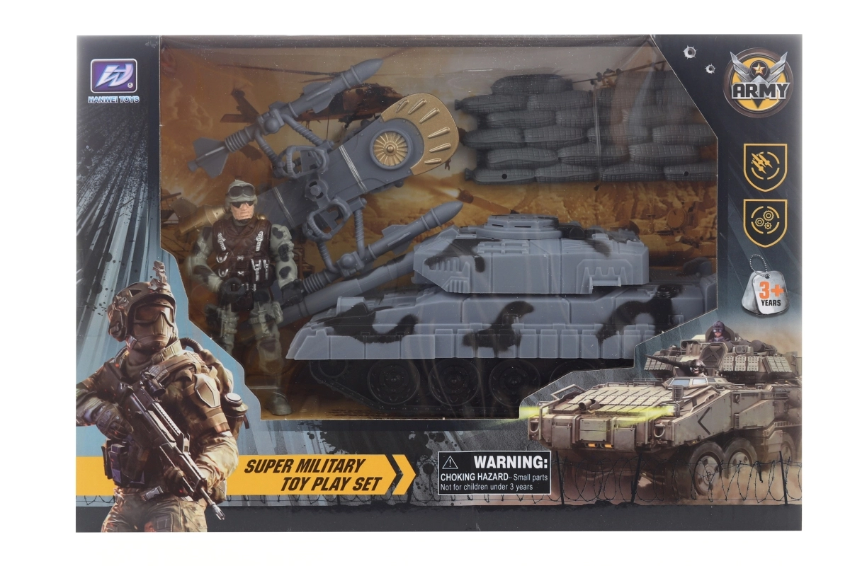 Objavte akčnú zábavu s touto vojenskou sadou s tankom pre malých dobrodruhov. Súčasťou balenia je figúrka vojaka, plastový tank a menšie doplnky na kreatívnu hru. Vhodné pre deti od 3 rokov, balené v praktickej krabici.