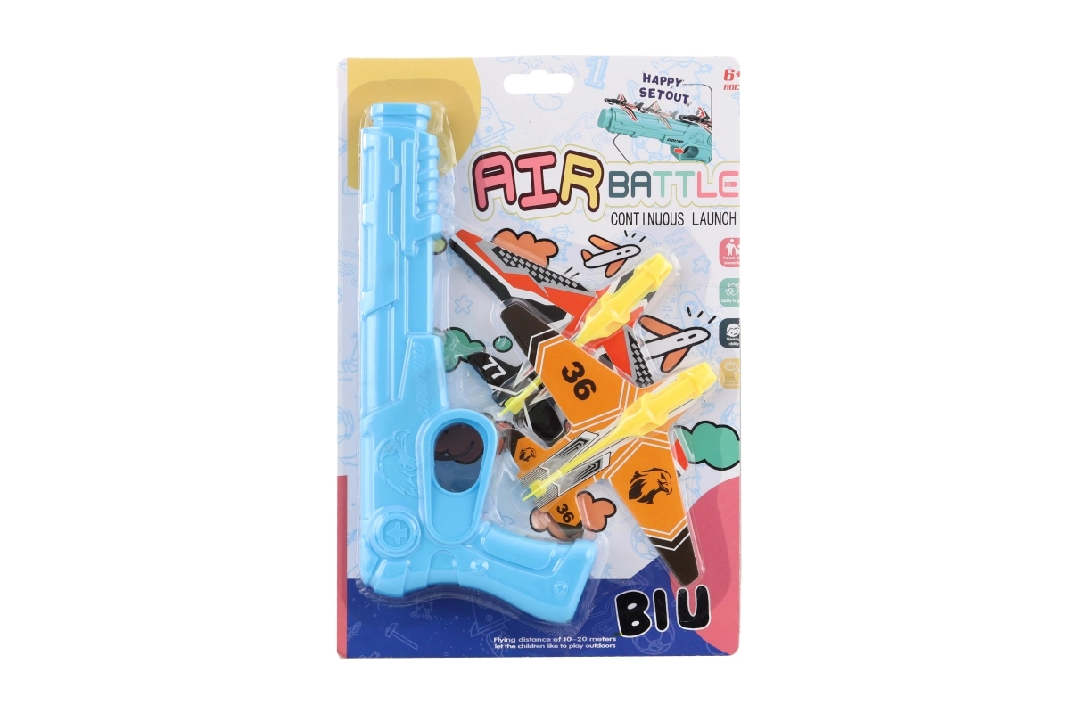 Zábavná sada pre malých pilotov: vystreľovacia pištoľ s lietadielkami na rýchlu akčnú hru. Balenie obsahuje pištoľ a 2 lietadielka, ktoré ľahko odpálite a sledujete ich let. Ideálne na vonkajšiu aj vnútornú zábavu, jednoduché ovládanie a bezpečný plastový materiál pre deti od 6 rokov.