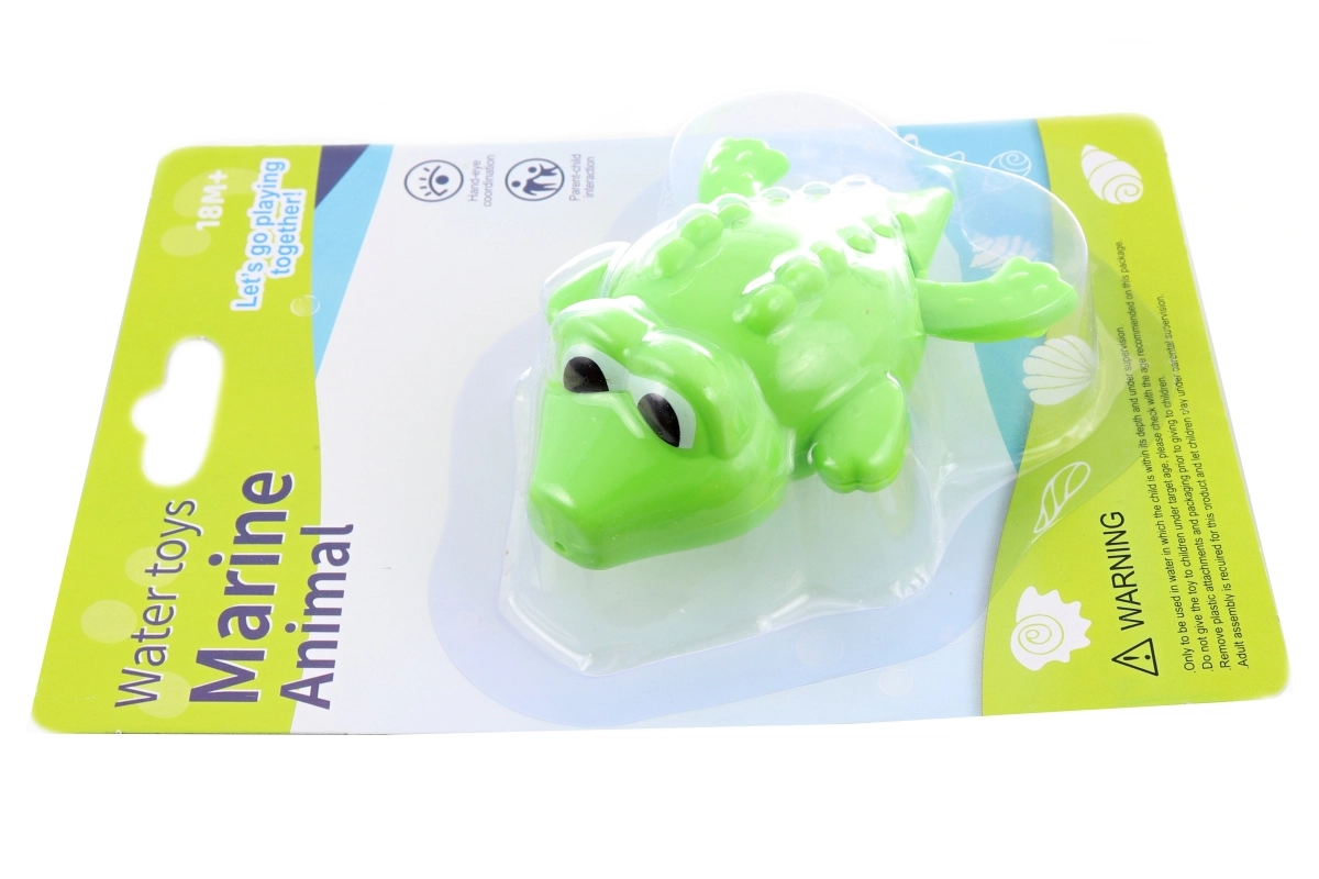 Zábavná hračka do vane pre najmenších – naťahovací krokodíl z plastu, ktorý po natiahnutí sám pláva. Ideálny na rozvoj motoriky, bezpečnú vodnú zábavu a hravé kúpanie už od 18 mesiacov.