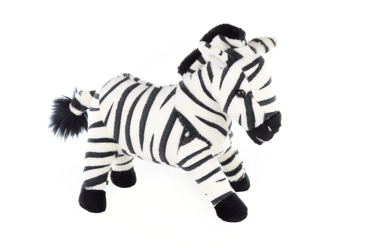 Roztomilá plyšová zebra poteší deti aj zberateľov. Meria približne 24 cm vrátane chvosta a vďaka výplni z malých guľôčok v spodnej časti bruška príjemne drží tvar a stabilne sedí. Ideálna ako maznáčik do postieľky alebo dekorácia do detskej izby. Mäkký materiál, príjemný dotyk a realistický vzhľad.