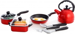 Herný set pre malých kuchárov obsahuje všetko potrebné na zábavné varenie – kanvicu, panvicu, rajnicu, hrniec, obracačky a makety jedla. Vďaka kvalitnému plastu je sada ľahká, bezpečná a ideálna na každodenné hranie. 13 dielov, odolný plast a vek 3+ zaručujú množstvo radosti a rozvoj fantázie a jemnej motoriky.