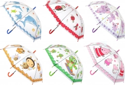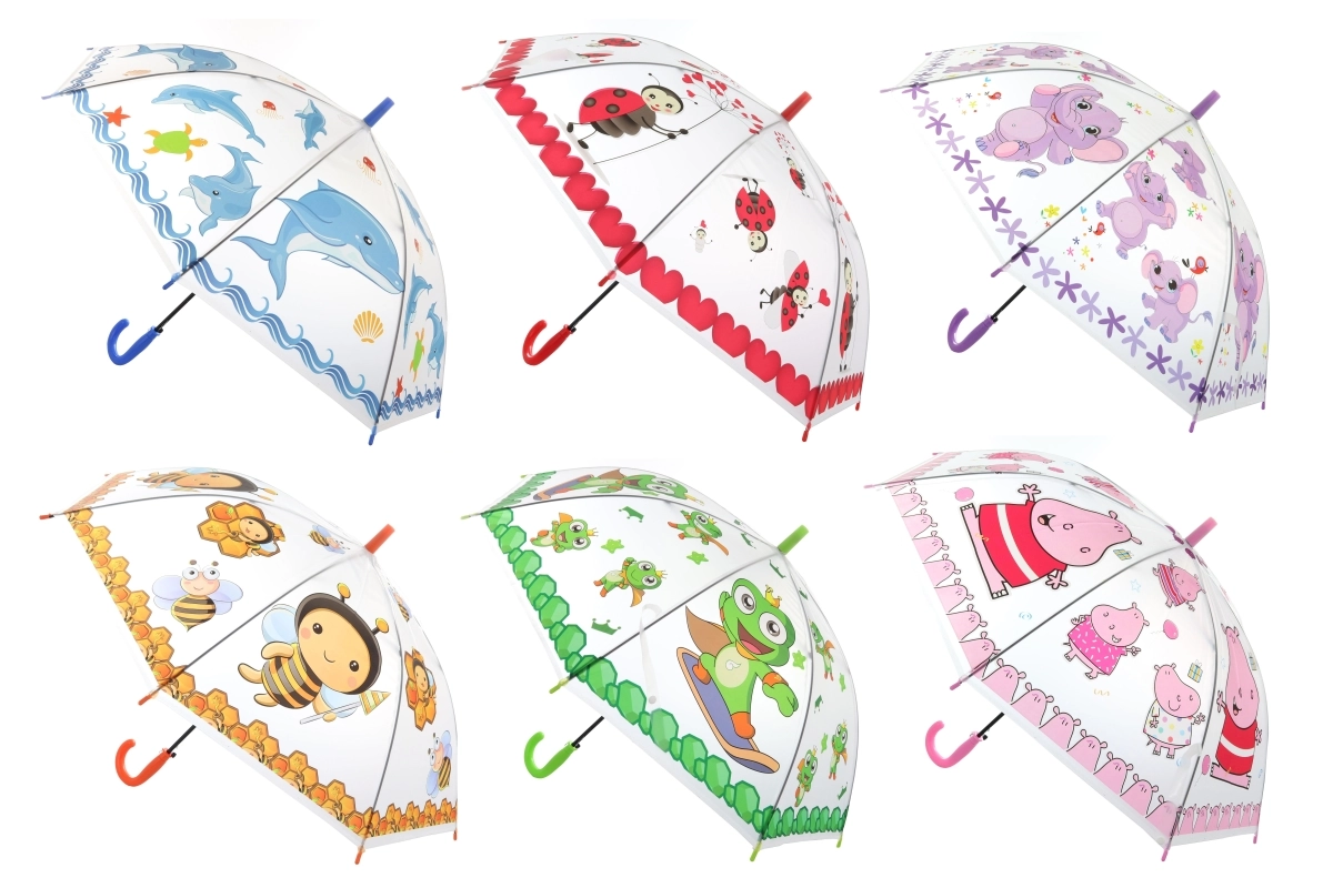 Štýlový priehľadný dáždnik so zvieratkami je ideálny do daždivých dní. Vďaka automatickému mechanizmu ho otvoríte jedným stlačením a priehľadný povrch zabezpečí dobrý rozhľad aj v hustnom daždi. Veselé motívy potešia najmä deti a spríjemnia každú cestu do školy či na výlet.