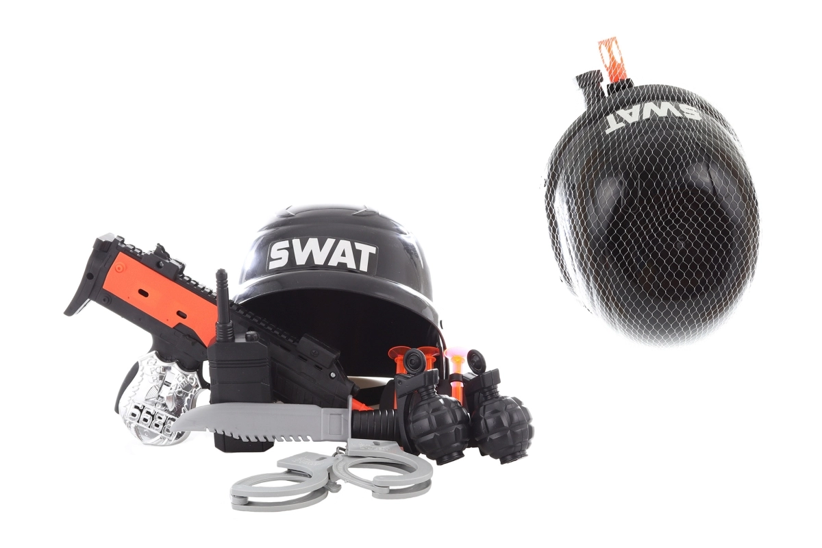 Kompletná policajná sada pre malých hrdinov obsahuje prilbu, pištoľ, náboje, putá, nôž, vysielačku, odznak a granáty. Ideálna na kreatívne hranie a rozvoj fantázie. Ľahký plastový materiál, bohaté príslušenstvo a bezpečné prevedenie pre deti od 3 rokov.