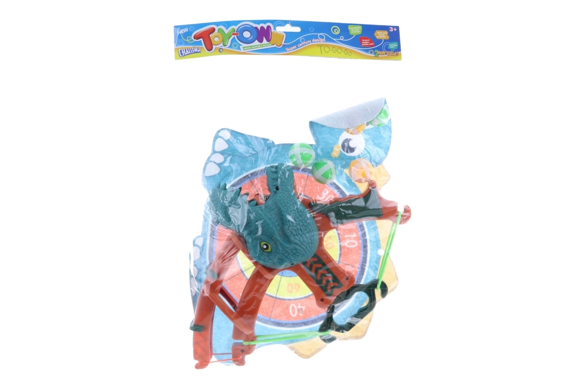 Zábavná sada pre malých strelcov: terč s motívom dinosaura a detská kuša so suchými zipsami pre bezpečnú hru. Balenie obsahuje terč, 5 loptičiek, kušu a háčik na zavesenie. Ideálne na rozvoj zručnosti a sústredenia detí od 3 rokov.