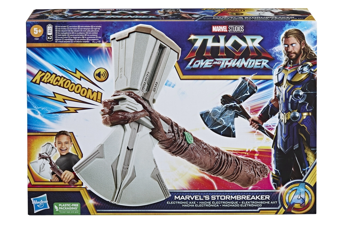 Staňte sa hrdinom ako Thor s ikonickou sekerou Stormbreaker inšpirovanou filmom Thor: Love and Thunder. Táto hračka vydáva realistické zvukové efekty búrky a hromu, aktivované tlačidlom v tvare listu. Je vyrobená z kvalitného plastu, vhodná pre deti od 5 rokov a funguje na 2× AAA batérie (súčasť balenia).