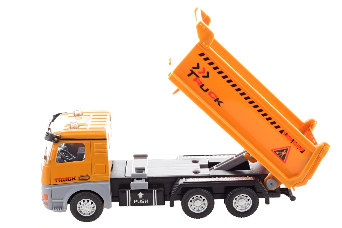 Táto robustná sklápacia korba v mierke približne 1:48 ponúkne deťom realistické hranie na stavbe. Vďaka kovovému telu a pevným plastovým dielom vydrží každodenné používanie, zatiaľ čo výklopná korba uľahčuje nakladanie a vyklápanie drobných predmetov.