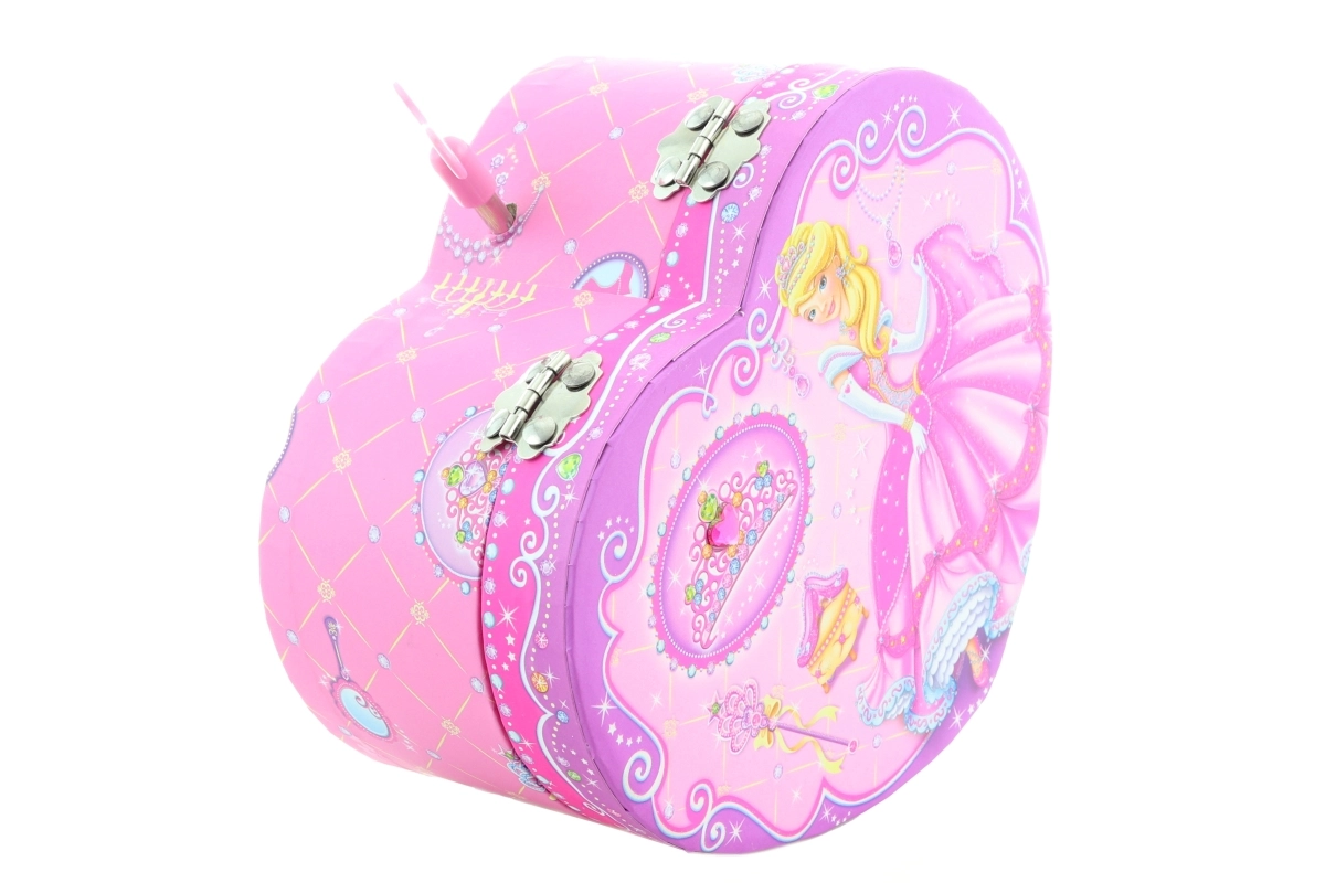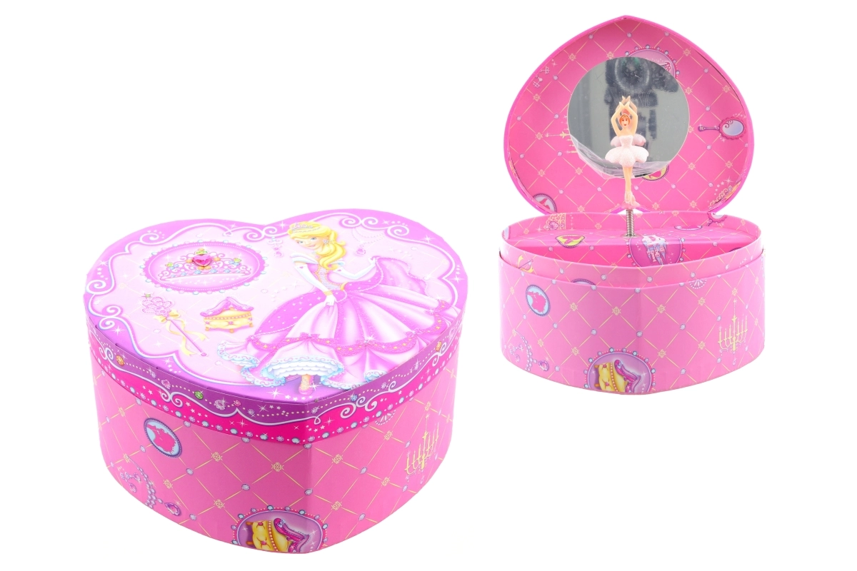 Kúzelná hracia šperkovnica v tvare srdca s motívom princeznej poteší každú milovníčku doplnkov. Po natiahnutí kľúča sa vo vnútri roztancuje baletka a zaznie jemná melódia. Praktické zrkadielko, bezpečné uloženie drobností a rozkošný dizajn robia z tejto šperkovnice ideálny doplnok do detskej izby.