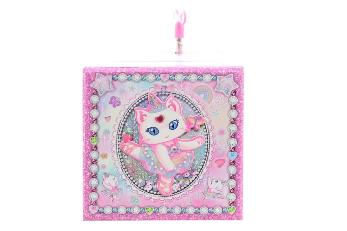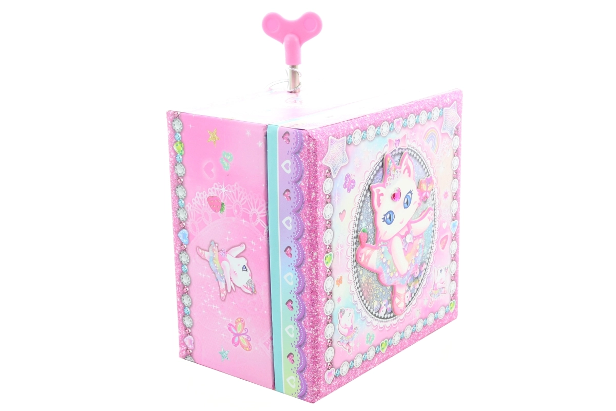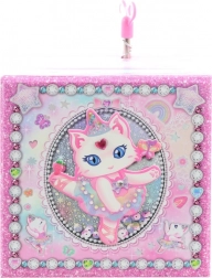 Roztomilá ružová hracia šperkovnica s motívom mačacej baleríny poteší každú malú parádnicu. Po natiahnutí kľúčka sa po otvorení veka spustí melódia a figúrka mačičky sa roztočí pred zrkadielkom. Ponúka bezpečné uloženie drobných pokladov a šperkov v jednom štýlovom boxe. Hudobný mechanizmus, zrkadielko a tancujúca mačka vytvárajú čarovný zážitok pri každom otvorení.