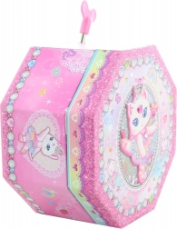 Kúzelná ružová šperkovnica s hudobným strojčekom a rotujúcou baletkou poteší každú malú parádnicu. Po natiahnutí kľúča sa figúrka roztočí a skrinka zahrá melódiu, zatiaľ čo vo vnútri nájdete praktické priehradky a srdcové zrkadielko. Ideálna na uloženie drobných šperkov a pokladov, s roztomilými motívmi mačiek a jednorožcov a trblietavým povrchom pre okúzľujúci vzhľad, jemnú hudbu a bezpečné uloženie drobností.
