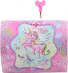 Táto okúzľujúca detská šperkovnica v ružovej farbe kombinuje praktické ukladanie drobností s magickým zážitkom. Po natiahnutí kľúčika sa vo vnútri pred zrkadielkom roztancuje baletka a rozoznie sa príjemná melódia. Motív jednorožcov a trblietavé detaily z nej robia perfektný doplnok detskej izbičky.