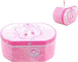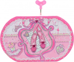 Táto pôvabná hudobná šperkovnica v jemnom ružovom prevedení kombinuje praktické uloženie drobností s kúzlom tradičnej hracej skrinky. Po natočení kľúčika sa vo vnútri roztancuje baletka a rozoznie sa melódia, ktorá navodí príjemnú atmosféru.