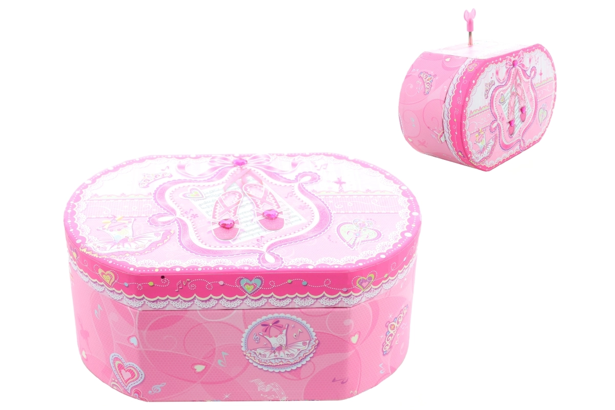 Vnútorné zrkadielko uľahčí skúšanie šperkov, zatiaľ čo oválny tvar a dekor s baletnými motívmi krásne ozdobí detskú izbu či toaletný stolík. Šperkovnica je ideálna na uloženie prstienkov, náušníc a drobných pokladov.