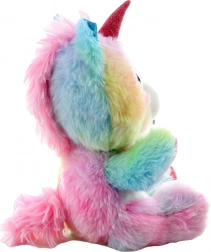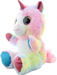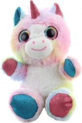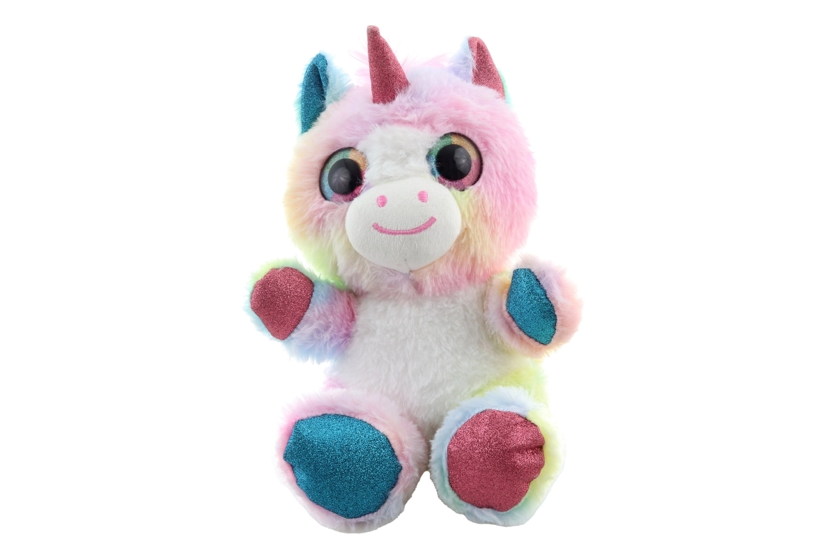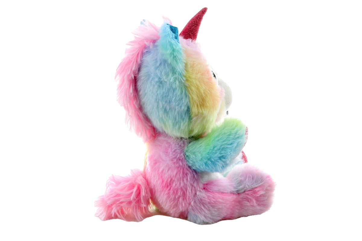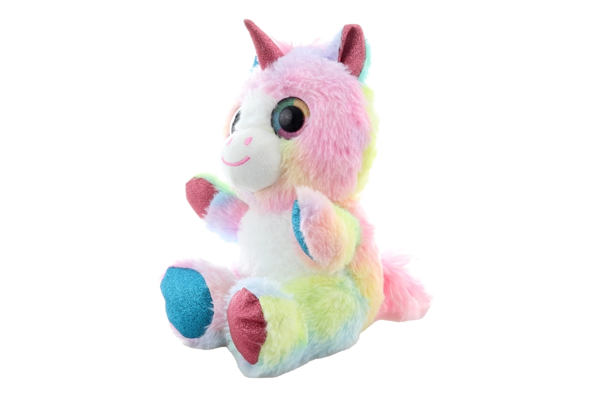 Tento farebný plyšový jednorožec si získa srdcia detí jemným povrchom a kúzelným vzhľadom. Pastelové dúhové odtiene, trblietavé detaily na rohu, uškách a kopýtkach a veľké vyšívané očká z neho robia skvelého parťáka na hranie aj zaspávanie.