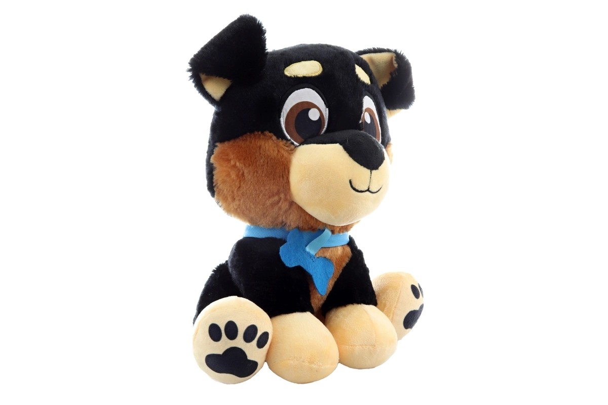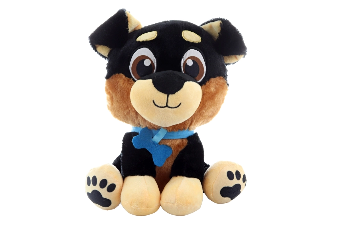 Bezpečné prevedenie bez drobných častí, odolné švy a hebký materiál z neho robia perfektného spoločníka pre bábätká aj staršie deti. Štýlový modrý obojok a labky s potlačou dodávajú hračke osobitý vzhľad.