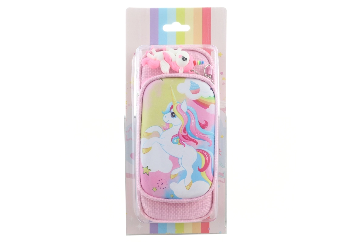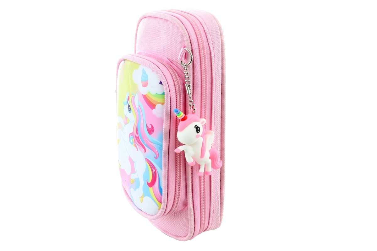 Súčasťou balenia je aj pôvabný prívesok jednorožca, ktorý poslúži ako ozdoba zipsu alebo kľúčenka. Peračník je vyrobený z mäkkého textilu, príjemne sa drží a je odolný na každodenné používanie. Kompaktná veľkosť uľahčuje uloženie v batohu či kabelke.