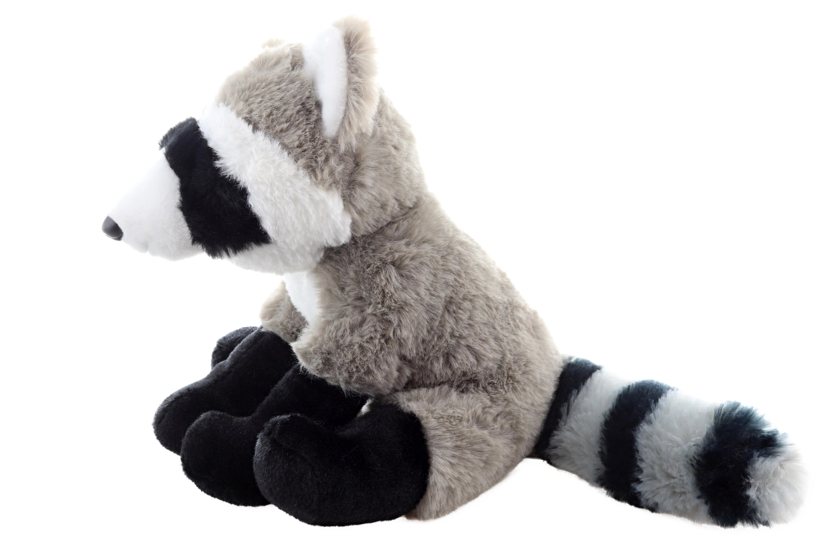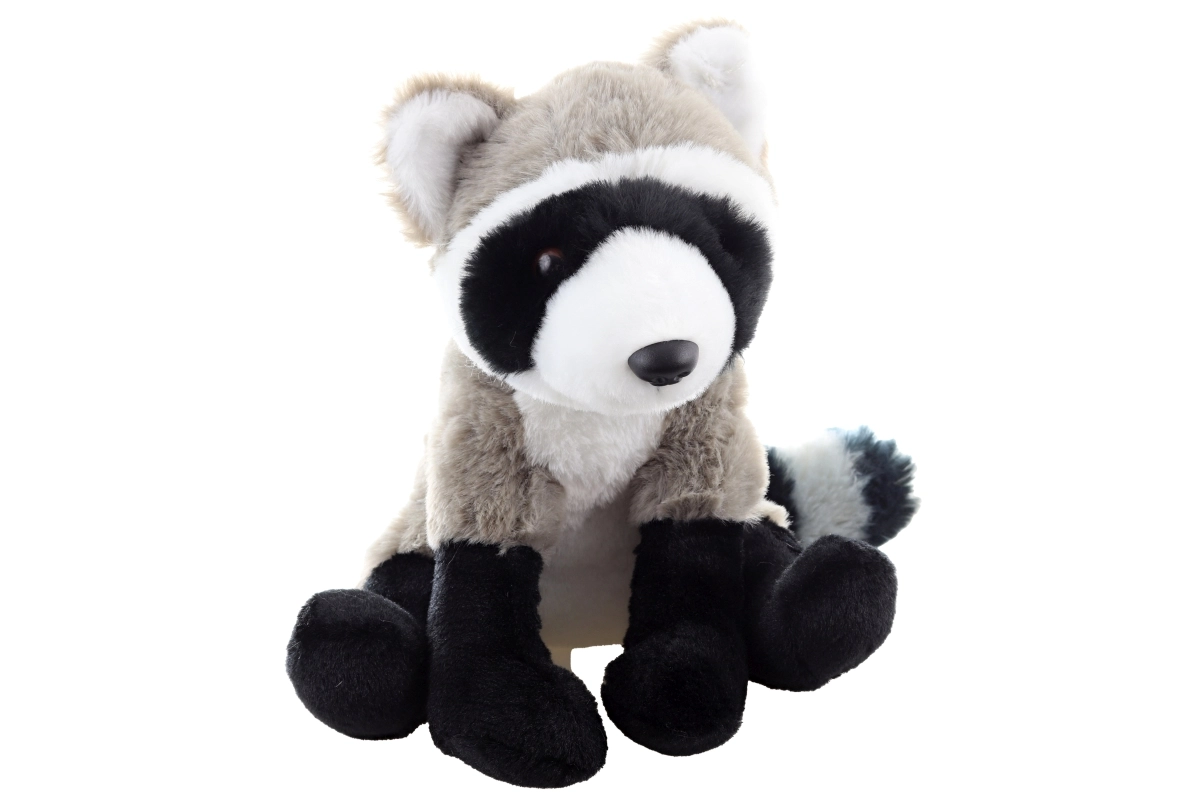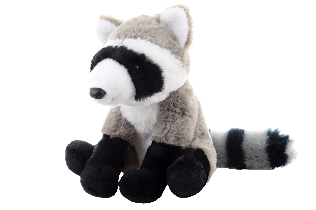 Charakteristická čierna maska, labky a pruhovaný chvost dodávajú hračke roztomilý a verný vzhľad.
