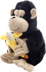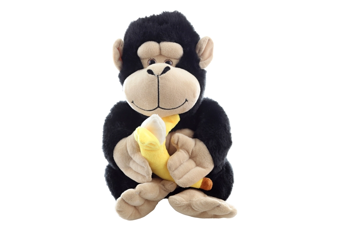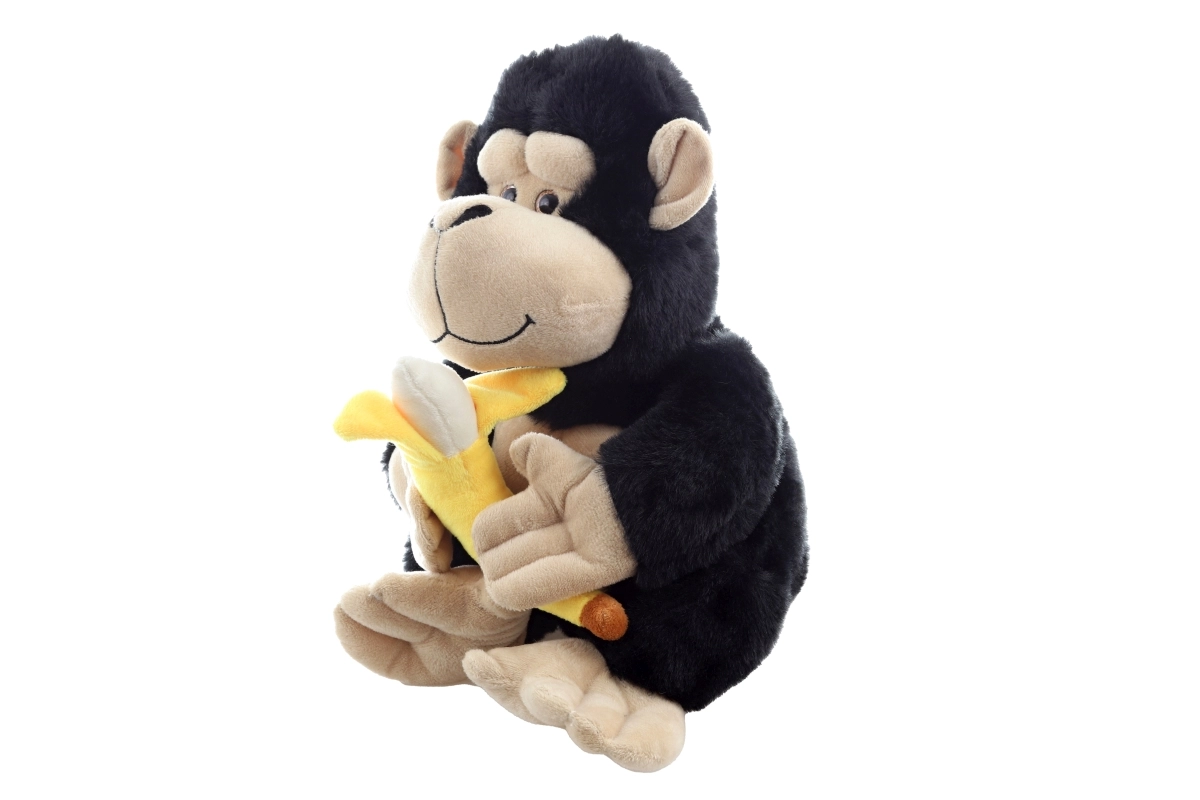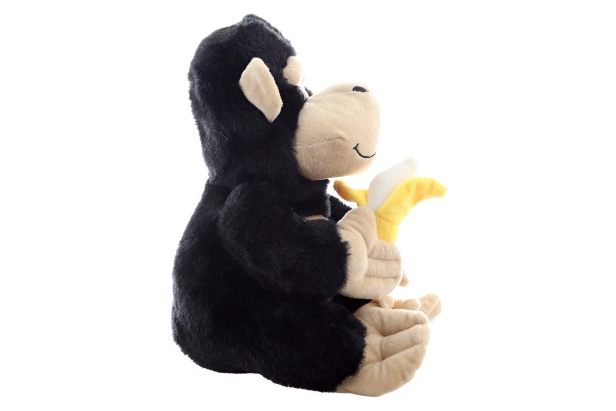 Táto plyšová gorila s veľkosťou 28 cm zaujme na prvý pohľad svojím jemným čiernym kožúškom a kontrastnou béžovou tváričkou, labkami a chodidlami. V labkách si hrdo drží mäkučký žltý banán – roztomilý doplnok, ktorý nabáda k imaginatívnej hre a rozprávaniu príbehov.