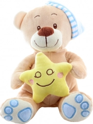 Roztomilý plyšový medvedík s modrou čiapočkou a žltou hviezdičkou je ideálny prvý kamarát pre bábätká aj malé deti. Je vyrobený z mäkkého a hebkého materiálu, má vyšívané detaily pre bezpečné hranie a vďaka kompaktným rozmerom sa skvele hodí do postieľky aj kočíka. Perfektný ako maznáčik na zaspávanie a upokojenie počas dňa. Vek 0+.
