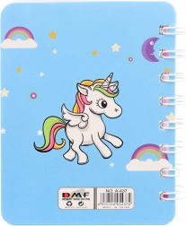 Hľadáte roztomilý a praktický zápisník do kabelky, aktovky alebo peračníka? Tento kompaktný zápisník s jednorožcom v pastelových farbách prináša radosť do každodenných poznámok. Linajkové listy s farebným okrajom udržia písanie prehľadné a špirálová väzba umožní pohodlné otáčanie aj úplné otvorenie strany.